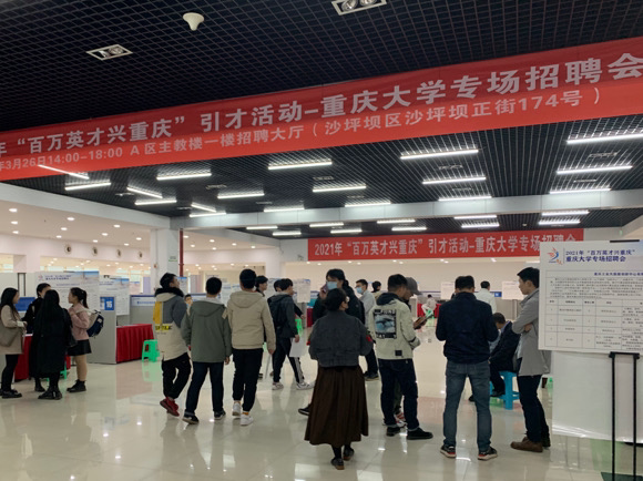 其中,重庆大学专场招聘会已于3月26日举行,72家企事业单位参会,近1000名重大学子入场求职。
