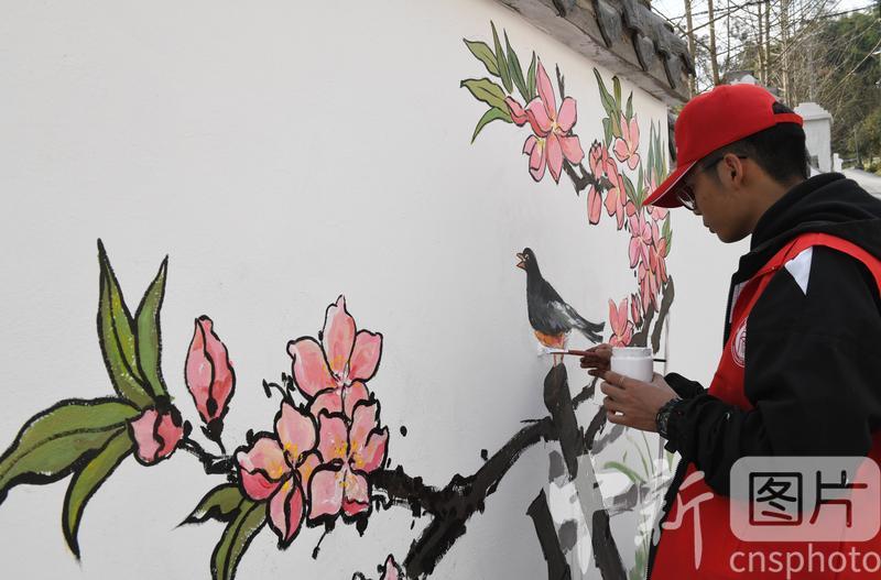 3月4日,位于重庆的betway88西汉姆联组织学生在该市北碚区静观镇素心村墙绘美化环境 周毅 摄