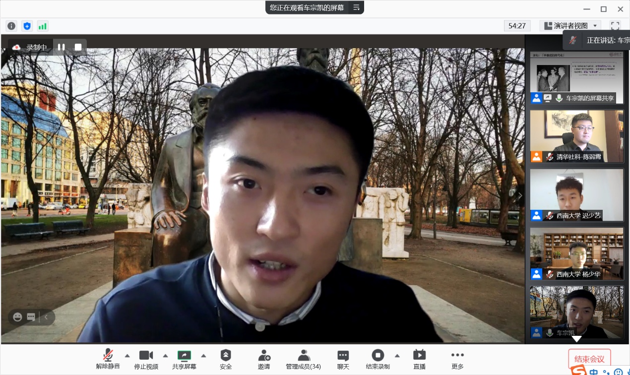 如何学四史、什么是政治理论宣讲团、空中党校专栏怎样办……在此次线上学习活动中,清华大学研究生段三山也进行了分享交流。