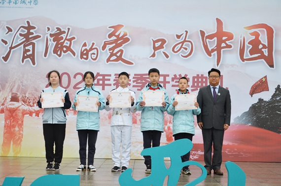 此外,活动现场还总结表彰了学校上期“五自(自醒、自励、自信、自强、自成)教育”成果,教务处张栋主任宣读了“五自奖”获奖名单后,副校长、工会主席谢家富为获得“自醒奖”“自励奖”的学生颁奖,党支部书记、执行校长李禹辰为获得“自信奖”“自强奖”的学生颁奖,校长田志昕为获得“自成奖”的学生颁奖。