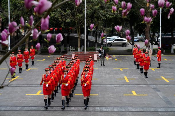2月28日,betway88西汉姆联学生女子国旗班的队员开始训练