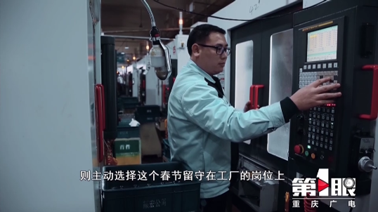 如果说,赵凤娟不能回家过年多少有些无奈,那么,北碚颜宏齿轮厂的员工王云,则主动选择这个春节留守在工厂的岗位上。王云老家在四川宣汉,离重庆车程只有三个车程。王云大学毕业后就来到重庆工作,七年过去,他早已习惯了异乡的生活。最让他想念的,是家乡的味道。说到家,说到过年,每一个人心中,都有温暖而又温馨的场景和画面。对于陈香雨来说,是和爸爸妈妈吃完年夜饭一起看春晚;对于赵凤娟来说,是一桌普通的家乡的饭菜,是串门儿聊天,会会儿时伙伴;对于王云来说,是和父母一起挖野菜,捡柴火。其实,做什么不重要,最重要的,是一家人,齐齐整整的,在一起。我们今年选择不回家过年,是为了明年春节,大家都能团团圆圆。今年春节,您,回家了吗?