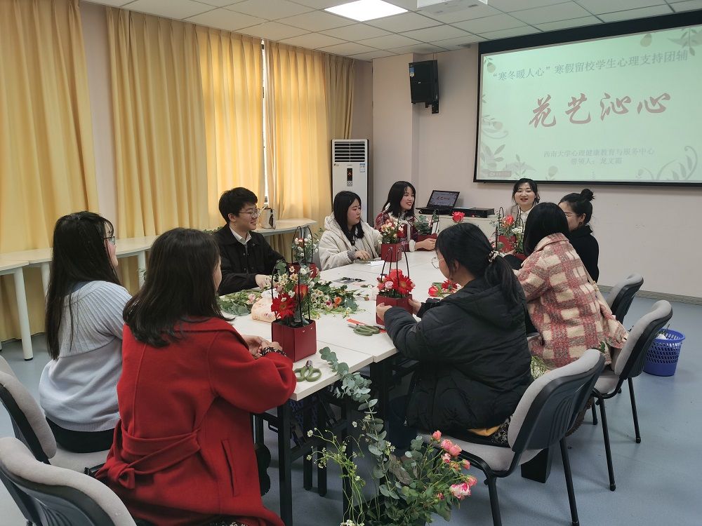 留校大学生们在开展花艺心理团辅活动 betway88西汉姆联学工部 供