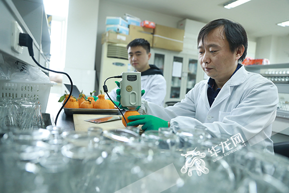 郑永强在做果实品质分析实验 谢鹏 摄