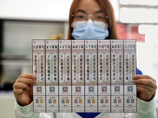 2月2日,上海交通大学学生事务中心工作人员展示为每名留校学生发放的80元春节加餐券。加餐券的设计融合了交大元素与牛年元素,票根可留作书签。今年寒假,上海交通大学约2000名学生留校过年,是往年人数的近10倍 刘颖 摄