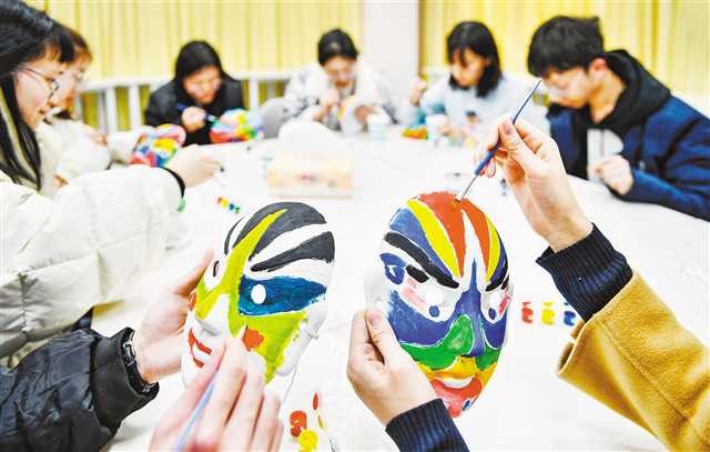 1月27日,betway88西汉姆联心理健康教育与服务中心,部分留校学生正在进行“绘画静心”活动,通过在脸谱上涂色表达自己的情绪 记者 齐岚森
