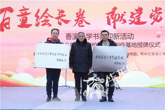 南岸区教委副主任朱静萍表示,2021年将是中国共产党成立100周年。我们齐聚香溪小学,一起用画笔描绘了中国共产党的伟大事迹,一起聆听了李玉珍老奶奶的革命故事,一起见证了方凤富青少年书画学校及学生创作基地的授牌,一起表达了内心对中国共产党的崇高敬意。希望孩子们在学习和生活中,爱党敬党,以笔为剑,以墨为锋,齐心协力,绘就自己人生的画卷,书写属于自己的精彩。