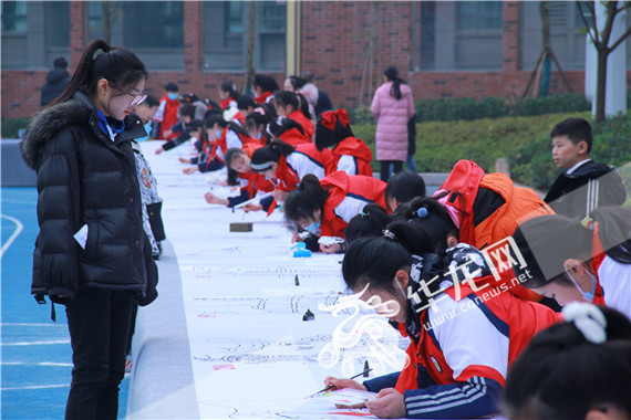 1927年南昌起义、1949年新中国成立、2001年中国加入世贸组织……一个个令人难忘的大事件,一段段令人动容的历史往事,在中国共产党百年光辉历程中显得格外耀眼。2021年,中国共产党将迎来100岁生日,如何通过自己的实际行动表达对党的真挚情感?22日下午,在南岸区香溪小学校“百童绘长卷·献建党百年”书画迎新活动现场,100名学生通过手绘百米书画长卷进行描绘中国共产党的鎏金岁月,祝福祖国更加繁荣富强。