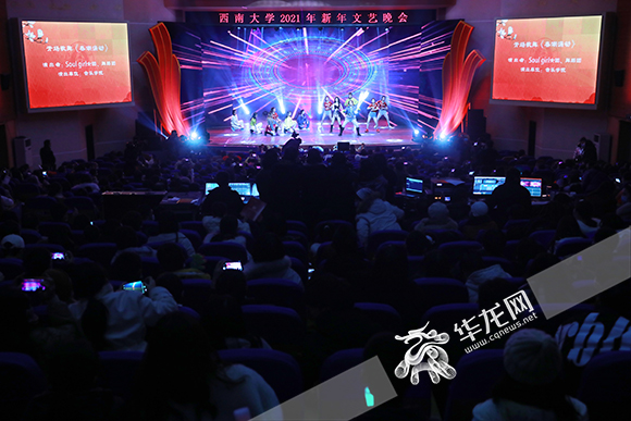 另外,晚会还在荣昌校区设置分会场,并在节目表演中穿插实时连线互动,荣昌校区的师生带来精彩的表演并送上诚挚的新年祝福。除传统表演外,晚会还增添了校友祝福环节,全国各地校友会通过视频给母校送上春联和祝福。