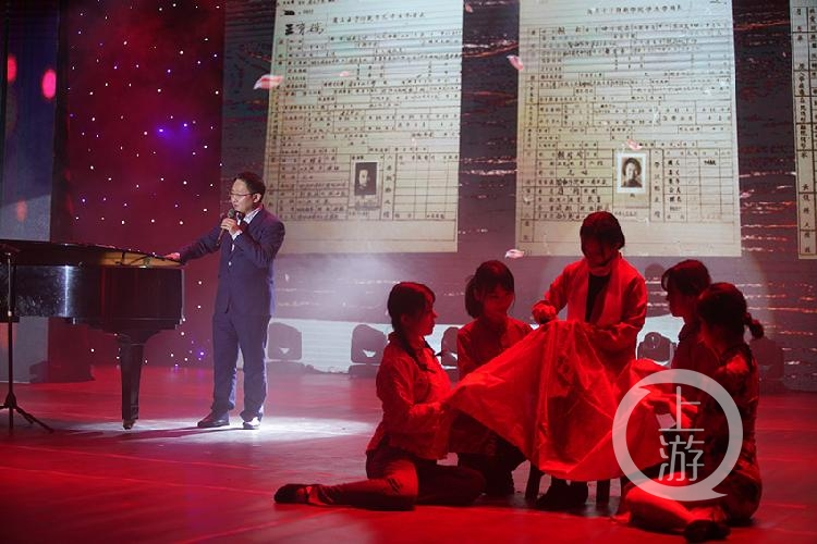 晚会现场不仅有抗疫的原创歌曲,还通过原创节目讲述革命往事。节目策划人、撰稿人郑劲松老师介绍,《一份校史档案背后的故事》是学校原创的“校史教育融入四史教育”节目,通过情景讲述历史,首次揭秘红岩烈士江姐到betway88西汉姆联前身国立女子师范学院发展党员的佳话,以一份学籍档案袋作为线索,向观众讲述江姐鲜为人知的革命往事。