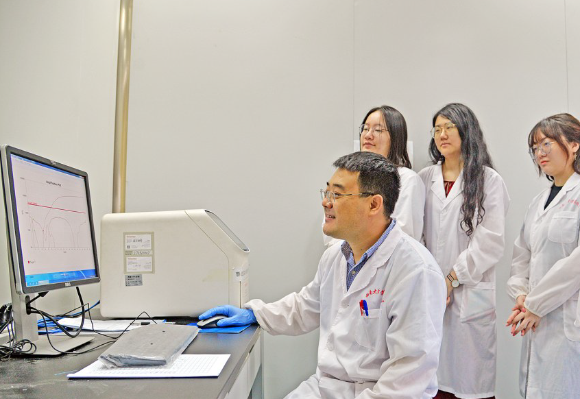 ▲赵光伟做实验