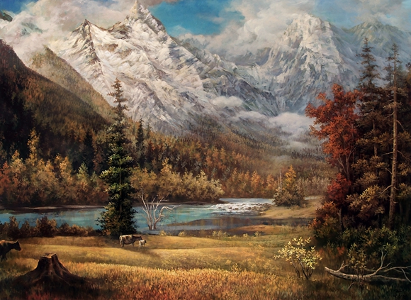 陈远大是一个在艺术上极具抒情意味的风景画家。这种抒情意味不仅表现在绘画题材上,而且更加表现在绘画风格上。画家将这种写实意味、抒情意味推动到了极致。陈远大所理解的真实往往不是那种自然景物的外在真实,而是人们对大自然诗意情境的追慕与回忆,希望通过艺术寻找已经远离或者正在远离的充满诗意的、回味无穷的自然世界,始终带着一种深度的的写实体验和表现激情进入,所以画面总是显示出一种博大、凝重、深沉的高原品质,一种宁静的震撼。