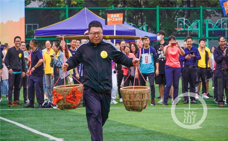 除农产品成果展示外,农学院师生踊跃参与“猜谜语”“浑水摸鱼”“打糍粑”“颗粒归仓”等农事游戏活动。其中,“颗粒归仓”环节要求参赛师生们团结协作,将粮食颗粒无损地搬回仓库。