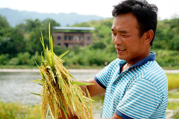 在明通村种养殖户王学伦的鱼塘,笔者看到,鱼塘水面上稻浪随风涌动,鱼塘边几名工人正在收割成熟的水稻。喜获丰收的王学伦开心地给记者算起了一笔账:“今年做鱼稻共生,稻谷亩产可达800斤,直接收入约4000多元。同时,鱼增产1000斤左右,大概能增加8000元左右的收入。此外,这种模式可减少鱼药、肥料的使用,这一项又能省下6000多元。”