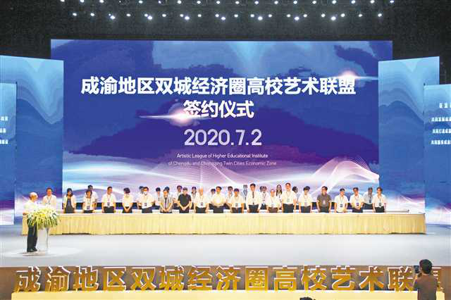 7月2日,由川渝68所高校参与的成渝地区双城经济圈高校艺术联盟在成都成立。该联盟由川音、川美牵头,旨在推动成渝地区的艺术教育、艺术创作和艺术产业发展,打通成渝艺术走廊,用产学研结合的方式服务地方经济文化建设。