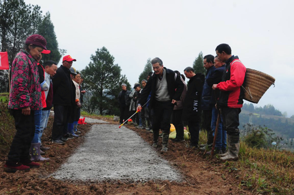 隗溟(后排中)对村民进行技术培训。隆太良摄