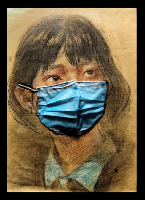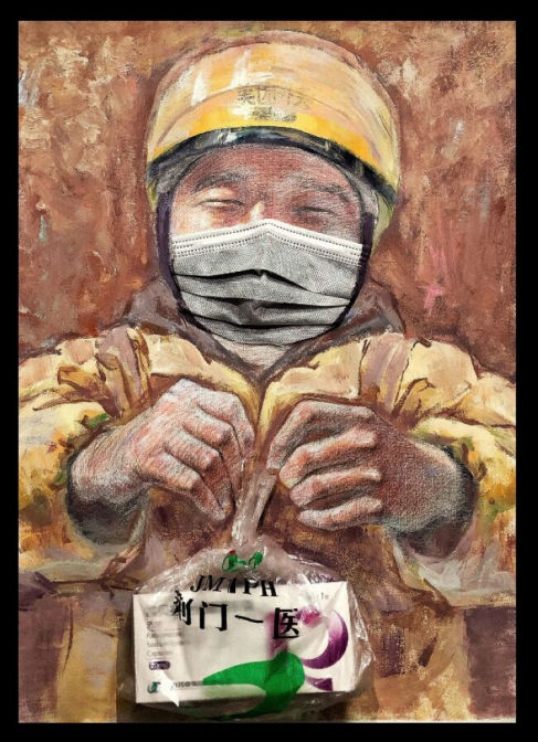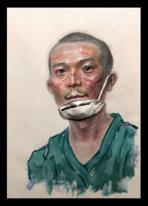 说起创作的过程,刘昱伽回忆,春节期间他与自己的专业老师石富通电话,“一开始就是聊一下近况,给老师拜个年,但聊着聊着就谈到了创作作品上。”刘昱伽坦言,那时的自己多少是有些焦虑的,但看到一线的奋战者自己又十分动容。在石富老师的耐心指导下,他的心情逐渐恢复了平静。石富通过电话给了他几点建议,让他尝试着将复杂的心情转化成为创作的动力。