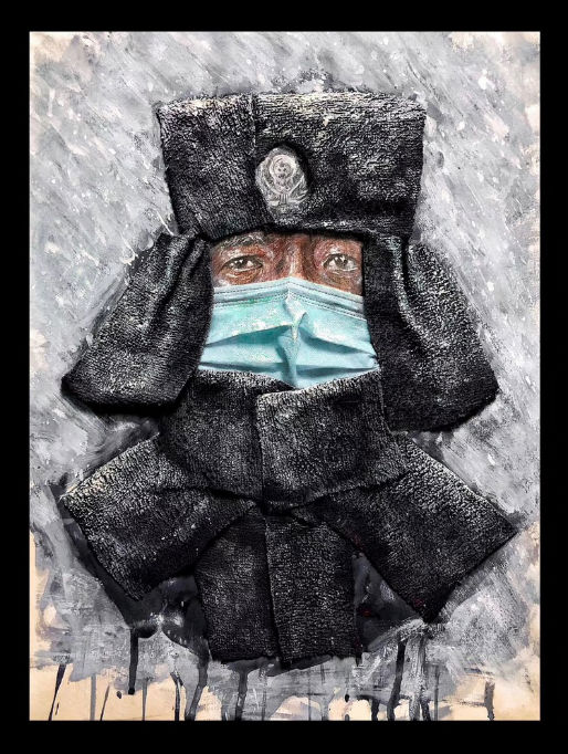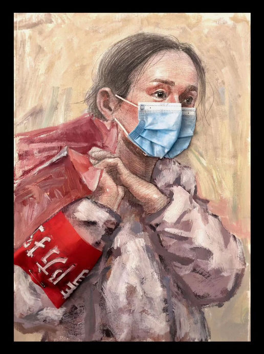上游新闻·重庆晨报记者了解到,这一组作品一共有5幅,作画方式为综合材料绘画。作品中的人物有医生、军人、社区工作人员、志愿者等。