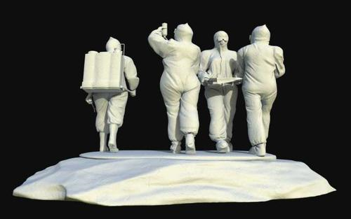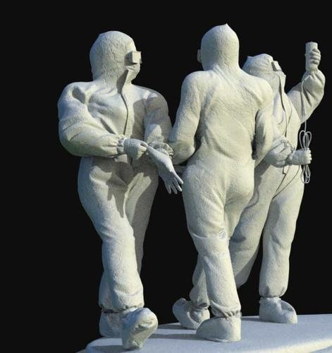 重庆日报记者看见,这件雕塑作品表达了医护人员既紧张又从容的工作行进状态。有意思的是,这几名医护人员的体量被加大加宽,“就像一堵墙,保护着大家。”石富说,实际上,医护人员都是血肉之躯,他们也会脆弱,也会生病,家里也有父母、孩子和牵挂,是这个时代的普通人。