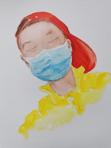 石富同时是中国孩子乡村教育艺术基金发起人,这段时间,他还创作了《呵护》《戴口罩的孩子》《拥抱系列》等画作。他将义卖画作的钱,用于湖南弘慧教育发展基金会在偏僻山区项目学校的孩子们。