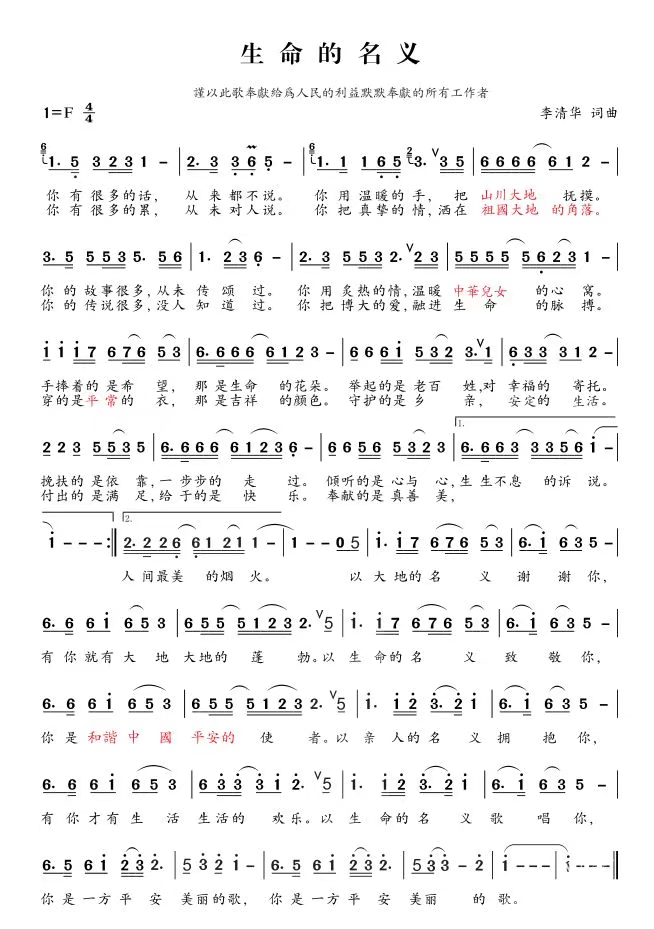 随即,李清华、姜明连夜辛苦制作,歌曲《生命的名义》于大年初一发布,一时间便引起了群众广泛的共鸣,在歌声中满怀感激感恩和感怀!