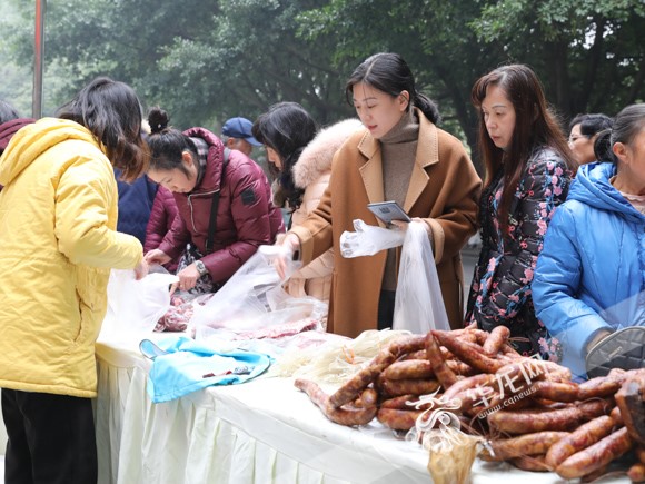 betway88西汉姆联,教职工购买香肠腊肉等年货。华龙网-新重庆客户端记者 张质 摄