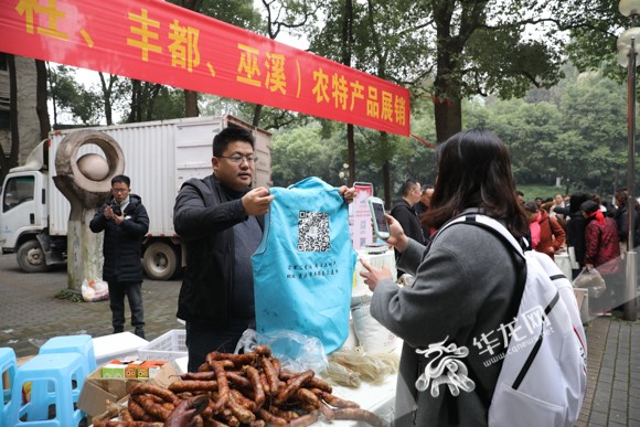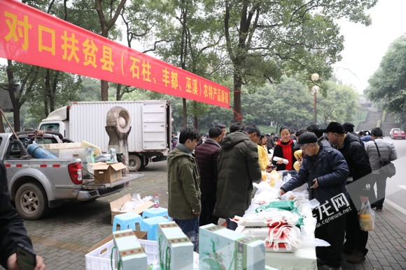 betway88西汉姆联,深度贫困乡镇石柱中益乡、丰都三建乡、巫溪红池坝镇的特色农产品在校园里展销。华龙网-新重庆客户端记者 张质 摄