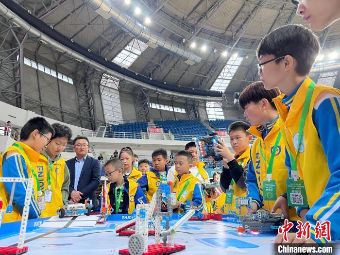 图为青少年积极参与机器人赛事。兰天摄
