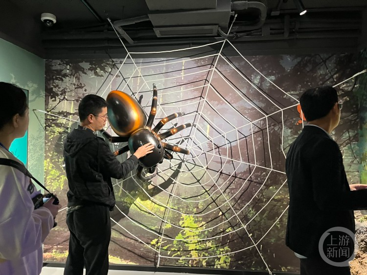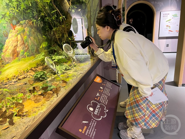 在科普教育展示厅,设置有“北纬30°•奇迹缙云”“森林时空·秘境缙云”“虫鸣风吟·五感缙云”“荟萃交融·蝶变缙云”“缙云四季”五个展厅,充分运用传统技巧和现代化多媒体技术,生动展示缙云山特色。在参观过程中,吸引了不少记者参与互动体验。