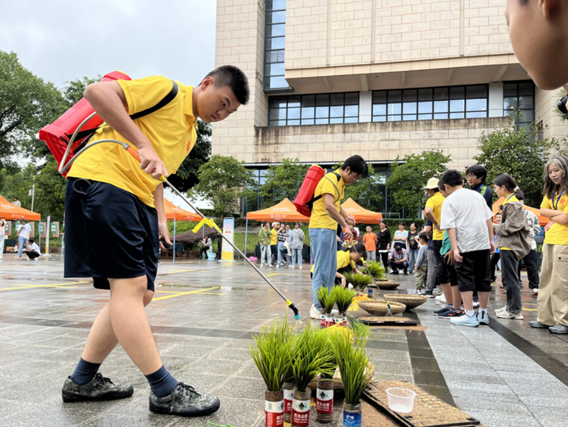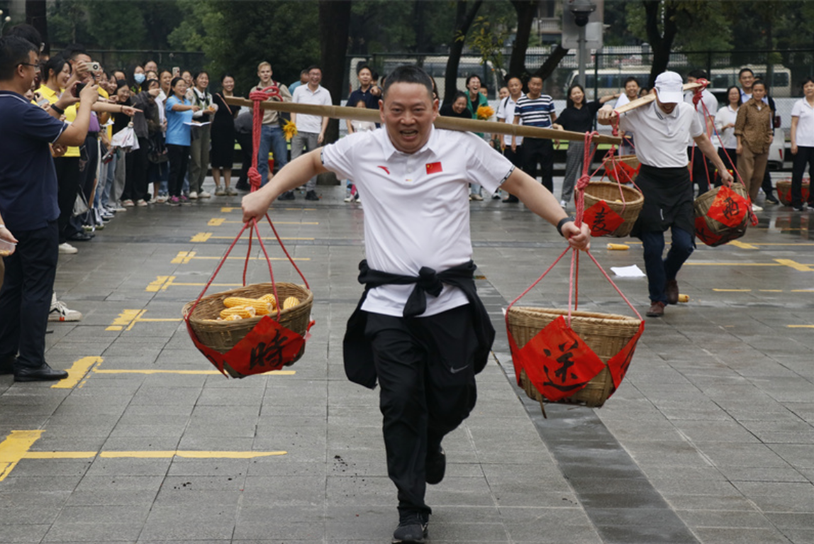 “春种秋收”活动中,学生队和教师队两支队伍轮番参与合作接力游戏,队员们必须快速穿越场地,开展土壤运输、播种、插秧、浇灌、施药等耕作环节,将春播秋收、春华秋实浓缩在接力过程中,场面热闹非凡。