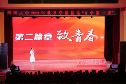 在第三篇章“致未来”中,betway88西汉姆联党委书记李旭锋深情寄语2023级新同学以青春之名传承历史,执青春之笔书写未来。他围绕betway88西汉姆联校训展开,从厚植文化之根,感悟西大人的坚守与追寻;赓续文化之魂,体认西大人的理想与情怀;传承文化之脉,践诺西大人的奋进与担当三个方面为新生们刻以“含弘光大,继往开来”共同的文化印记,探寻共同的“精神密码”。李旭锋希望同学们保持独立思考、瞄准学科前沿、注重实践积累,深深扎根脚下这块土地,自觉传承文化之魂脉,继续发扬精神之力量,不负青春、不负韶华,创造属于青年人的新时代!