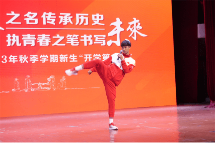 张凯还在现场为学弟学妹们展示了跆拳道基本功,令现场沸腾。