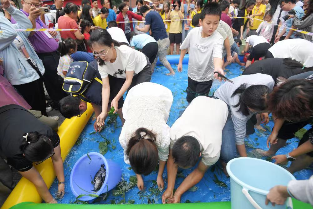▲活动现场,师生们正在进行“摸鱼”比赛。