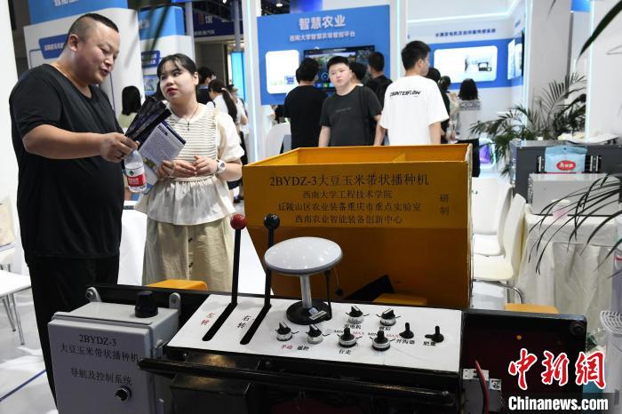 图为重庆邮电大学科研成果亮相2023智博会。中新网记者周毅摄