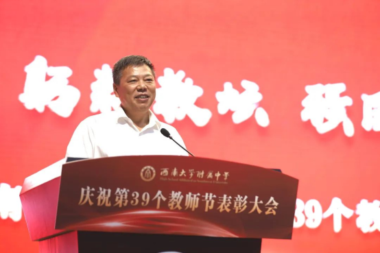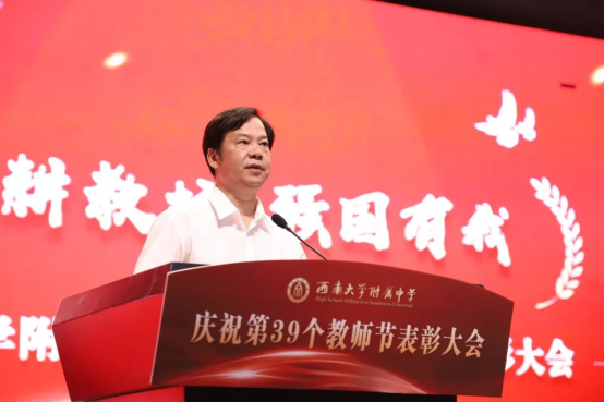 为党育人、为国育才,突出精神引领,强化使命担当。培根铸魂、立德树人,弘扬尊师重教,共兴尊师风尚。为表达对老师们的崇高敬意,9月8日,betway88西汉姆联附中举行了“躬耕教坛强国有我”庆祝第39个教师节表彰大会。betway88西汉姆联校长张卫国,betway88西汉姆联党政办公室主任靳拥军,betway88西汉姆联附中党委书记、校长欧健等附中校领导出席。