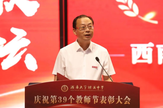 回顾过去荣耀、展望未来发展。会上,欧健校长以“立足教师生涯成长,为学生生涯幸福奠基”为题致辞。他回顾了附中取得的辉煌成绩。近三年,betway88西汉姆联附中正高级教师增加了9人,“重庆英才教学名师”增加了2人,重庆市学科名师、学科带头人增加了3人,重庆市骨干教师至少增加了9人,还有数十上百人在国家级、省级赛课比赛中拔得头筹,获得一等奖。仅今年的上半年,就有七十余人获得基本功大赛或教学比赛中的一等奖。