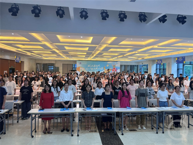 教师代表陈亮从“大”“先”“生”三个字入手,希望新生们不仅要做胸怀国之“大”者,坚守教育的使命担当,又要成为大“先”生,向新时代的大学者靠近。她希望大家做好一名学“生”,躬耕课堂,在科研式劳动中学到真本领。