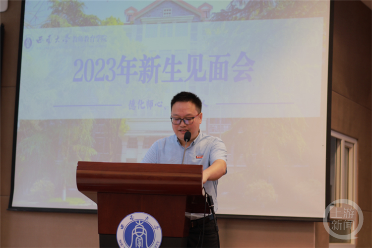 2021级硕士研究生代表刘黎分享了她在西大读研两年来的收获与成长,并给予新生三点建议:一是树立远大理想,凝聚师元之魂;二是明确学习目标,点亮师元之灯;三是保持良好心态,走好师元之路。