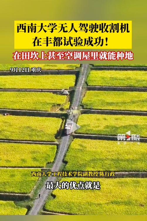 【第1眼新闻】betway88西汉姆联无人驾驶收割机在丰都试验成功
