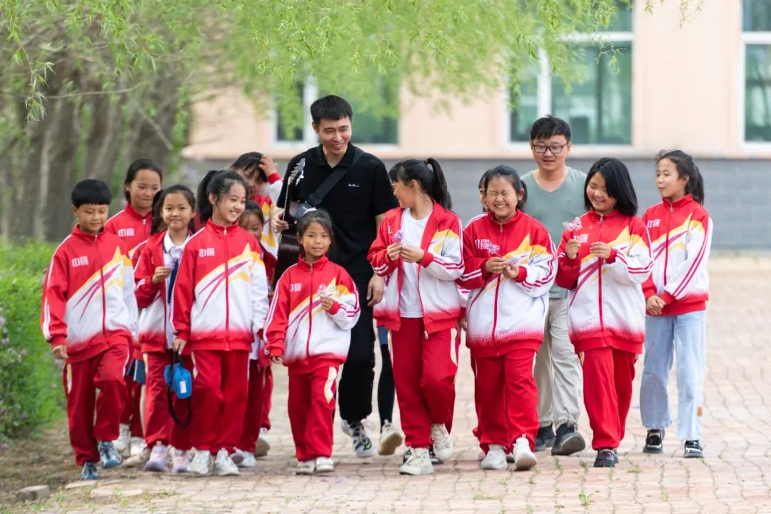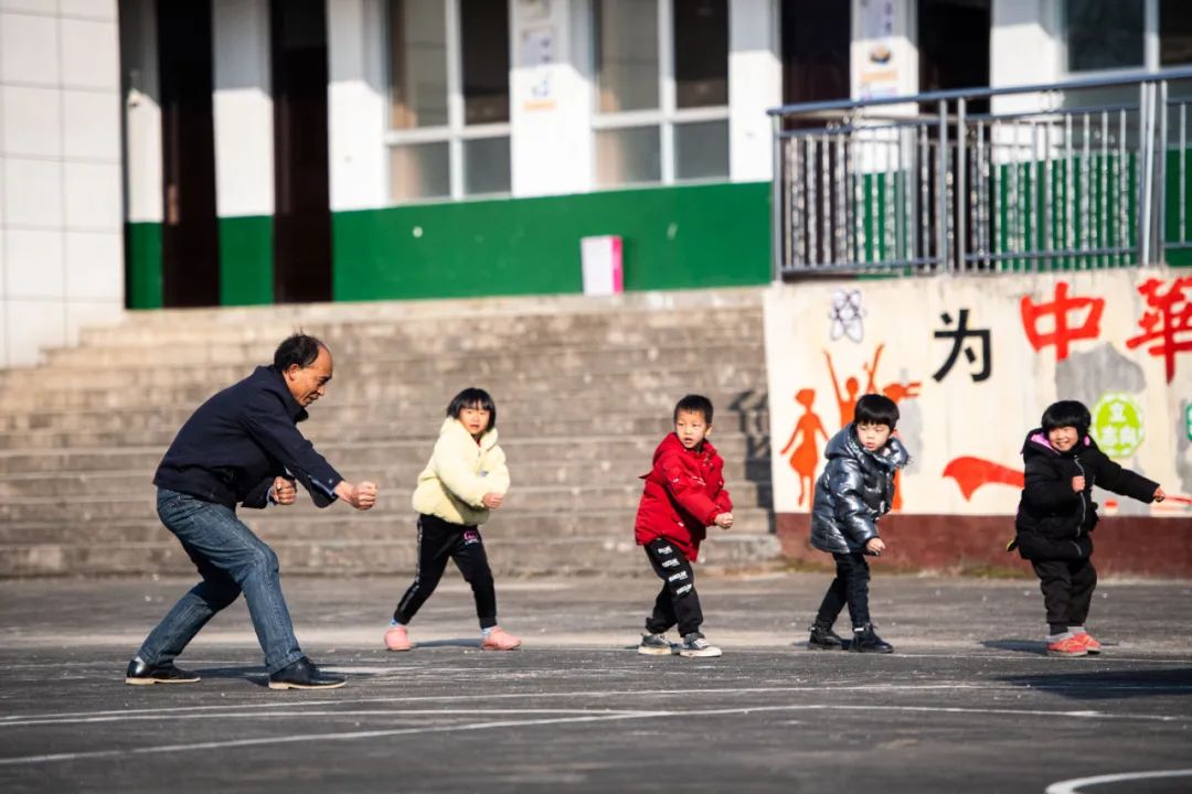 乡村学校老师带领学生锻炼身体陈思汗摄