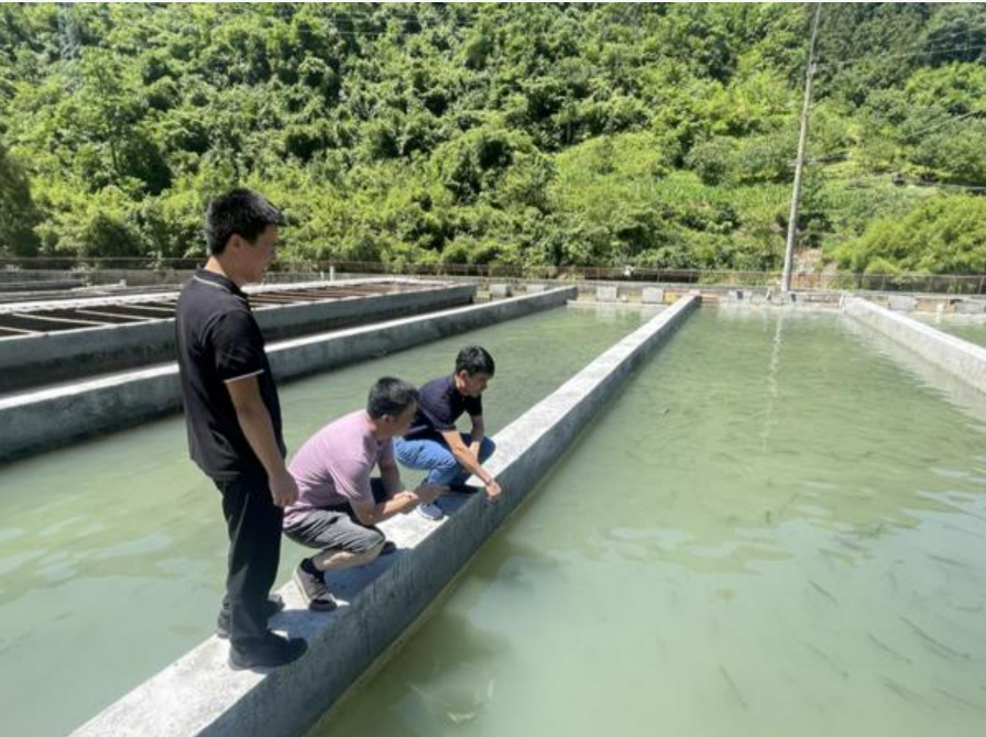 在开州冷水鱼养殖基地,何滔副教授、吴荣华副教授、冯科老师详细了解了养殖场鲟鱼、虹鳟、齐口裂腹鱼等冷水鱼类的生产、经营、销售等情况,专家们建议加强冷水鱼养殖管理、加强水质监测和尾水治理能力建设、提升渔业智慧化水平、打造渔业品牌,推进冷水鱼产业高质量发展。