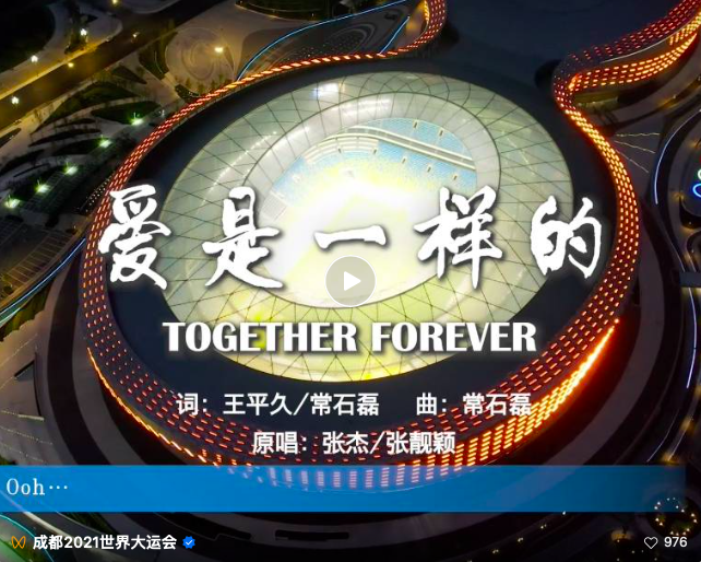 据悉,《爱是一样的》全球同唱活动,是“以声传声-听见大运的声音”活动的一部分,旨在通过音乐为成都大运会加油助威,向全世界展现青年一代友好、团结、奋进的精神与活力。