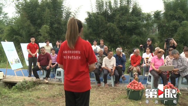 在北碚区三圣镇德圣村的蜜桃科技小院,betway88西汉姆联的师生们来到果农中间,为他们介绍我国科技小院的发展概况、betway88西汉姆联科技小院的建设模式,并为果农们带去普法宣讲,受到了果农们的热烈欢迎。