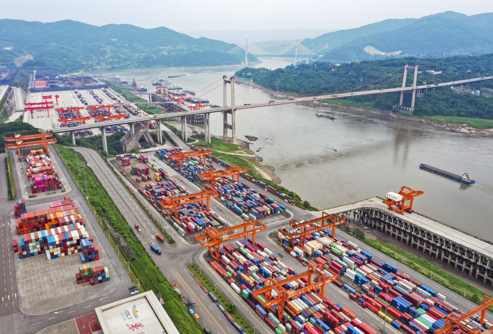 如今,朝天门依然是重庆通江达海的开放之门。自朝天门码头顺江向东,一座国际化的内河多式联运枢纽港果园港,正日夜不息运转。依托长江黄金水道、西部陆海新通道、中欧班列(成渝)等国际物流大通道,短短几年时间,该港从传统内河港口升级为长江上游联通全球的“中转站”,货物可通达全球100余个国家和地区的300余个港口,大大拉近了西部内陆与世界的空间距离。