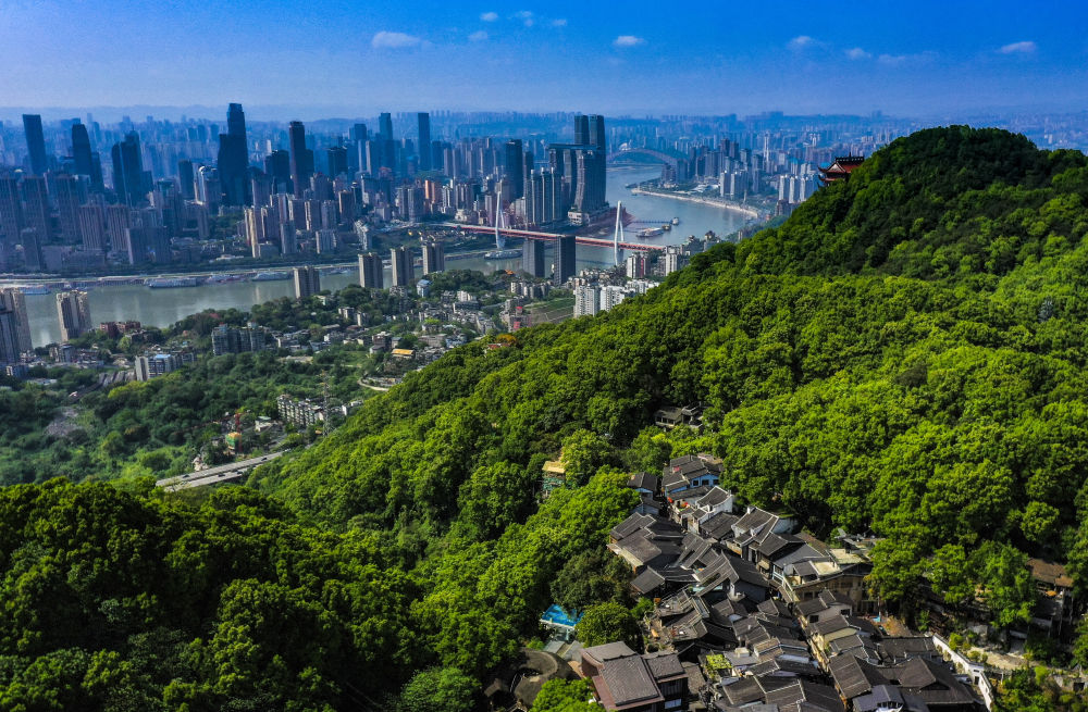 从南山上的重庆南岸区黄桷垭老街俯瞰的山下的重庆城区。新华社记者刘潺摄