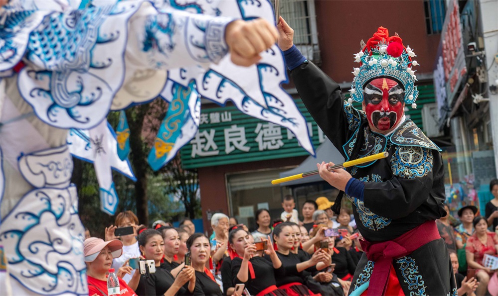 ▲6月20日,璧山区璧泉街道南河社区,居民在“浓情端午·传承文明”端午节区级示范活动上观看川剧表演。记者崔力摄/视觉重庆