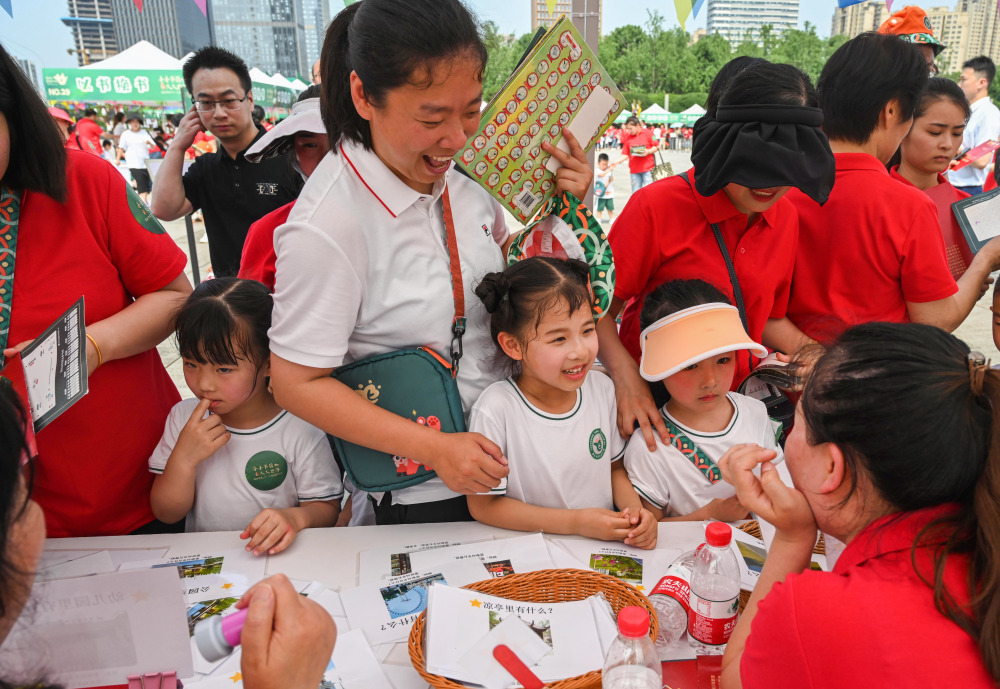 该校还设置了“海底总动员”“火烈鸟高尔夫”等游戏PK项目。“太有趣了,我集了25个章!”三年级5班学生张子漠说,闯关游戏既考体力,又考验智慧。
