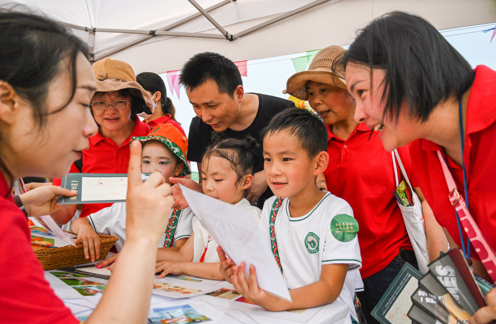 ▲5月31日,渝北区中央公园广场,家长和学生正在参加阅读集市的活动。首席记者 龙帆 摄