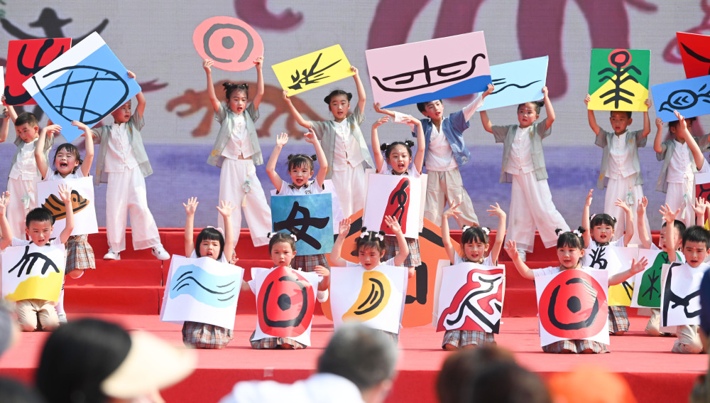 在象形字体验摊位,孩子们用一张张卡片拼成了“山”“林”等象形字,感受中国汉字的趣味和奥秘;在活字印刷摊位,选字排版、毛笔刷墨、覆压宣纸等游戏让孩子们玩得不亦乐乎。