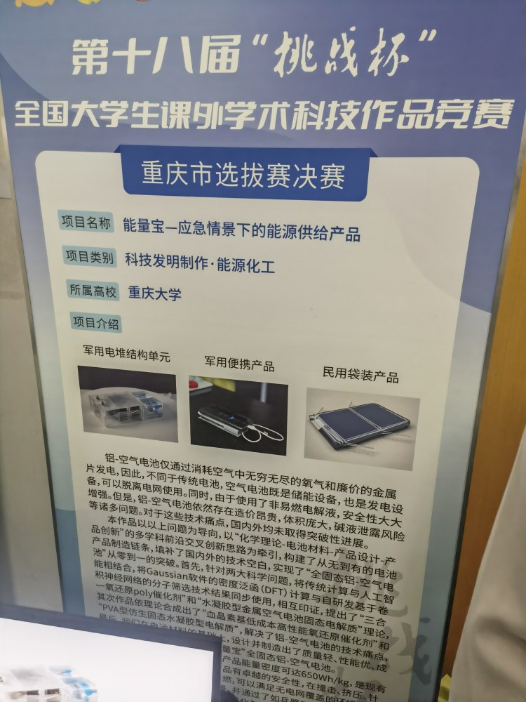 废旧的锂电池如何能“变废为宝”?你听说过“空气电池”吗?6月3日,2023年第十八届“挑战杯”全国大学生课外学术科技作品竞赛重庆市选拔赛决赛在betway88西汉姆联举行。今天前来现场参赛的作品,是从全市参加校赛的14683件作品层层选拔出来,最终将有51件作品“突出重围”,参加今年9-10月份在贵州大学举行的全国总决赛。